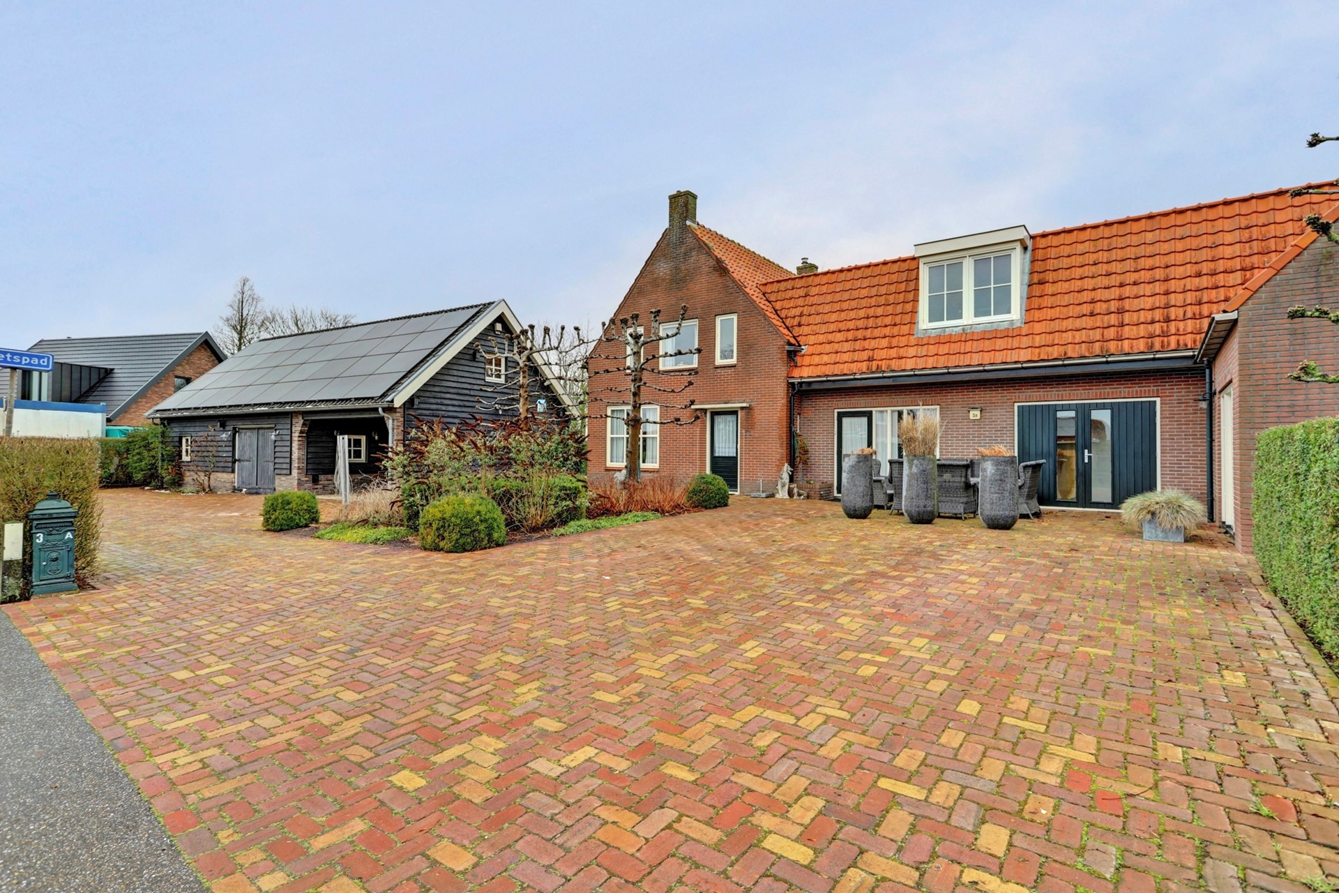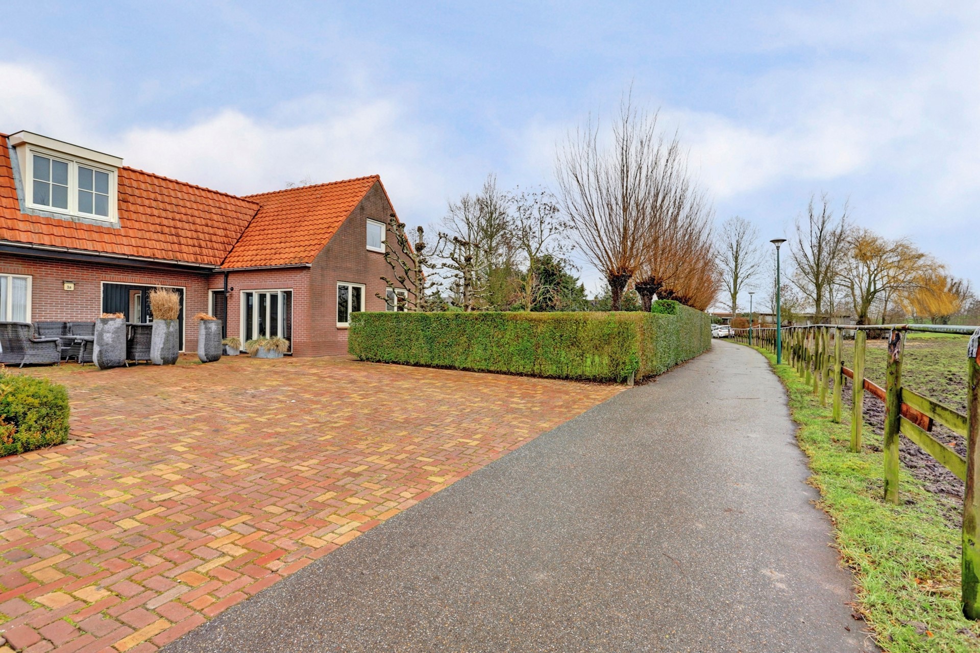 Ook biedt het perceel voldoende parkeergelegenheid aan de voorzijde van de woning.