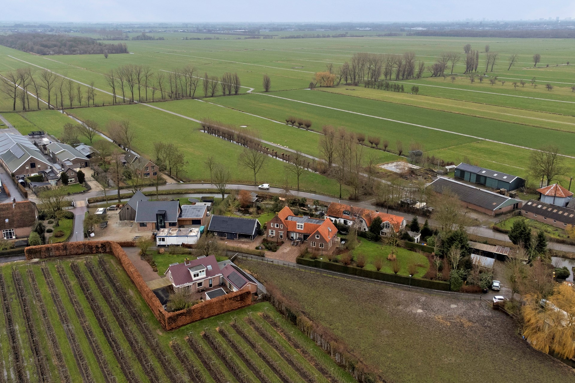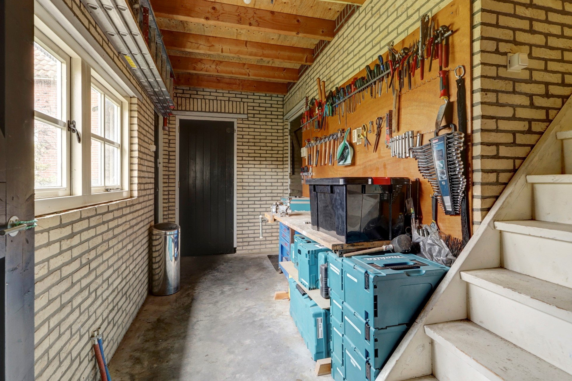 De schuur ca. 14 x 7 meter is gebouwd met het idee er ooit een woning van te maken en is daarom gebouwd met een stenen binnenwand, vervolgens v.v. isolatie met aan de buitenzijde gepotdekselde houten wanden. Er liggen leidingen voor vloerverwarming op de begane grond en er is een verdieping welke bereikbaar is met een vaste trap.