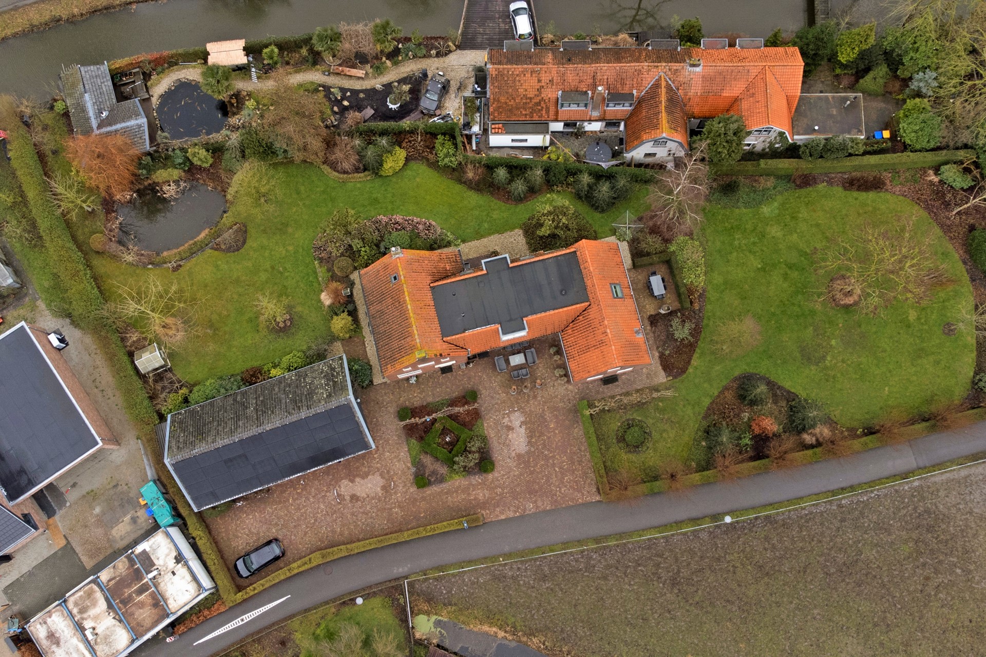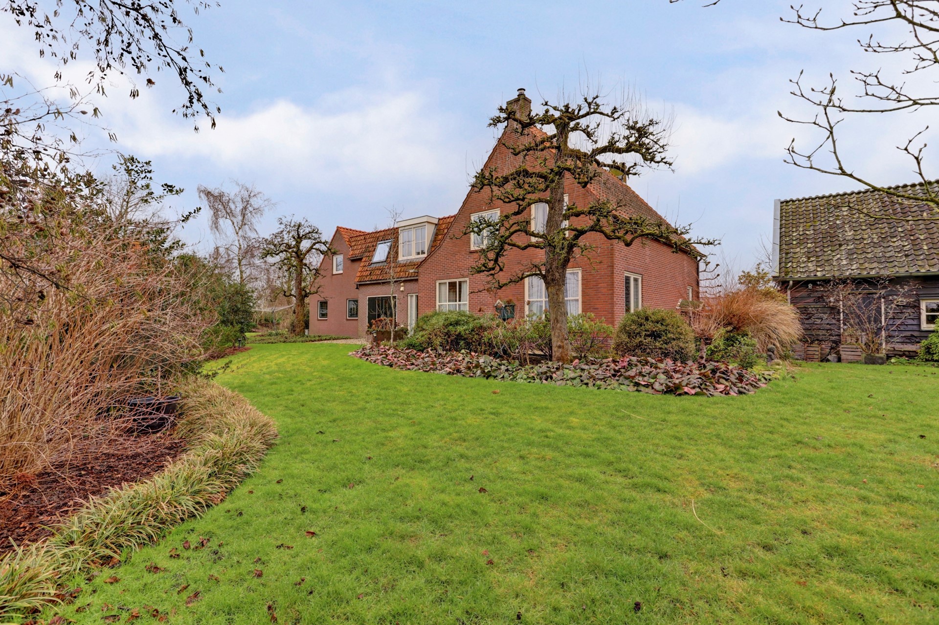 Bijzonder centraal gelegen ruime woning, geschikt voor dubbele bewoning, met een grote vrijstaande garage met carport, omringd door een prachtige tuin op een perceel van 2.235 m².