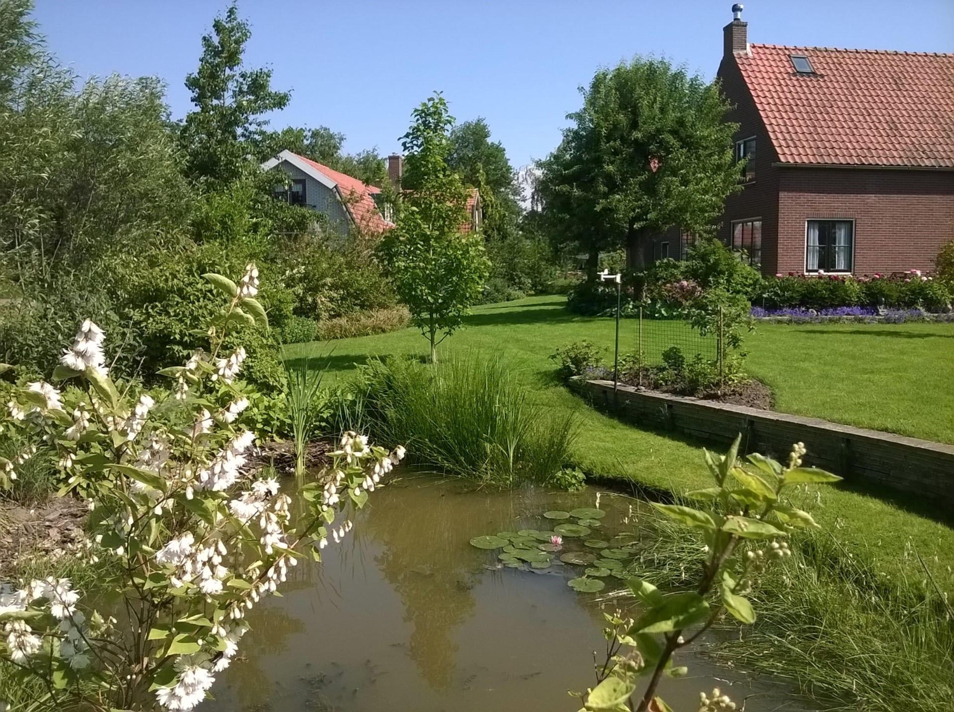 In de prachtige, onder architectuur aangelegde en keurig onderhouden, tuin is altijd een fijne plek te vinden om te genieten van de rust en van de zon.
