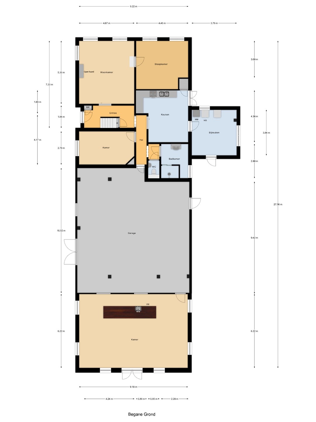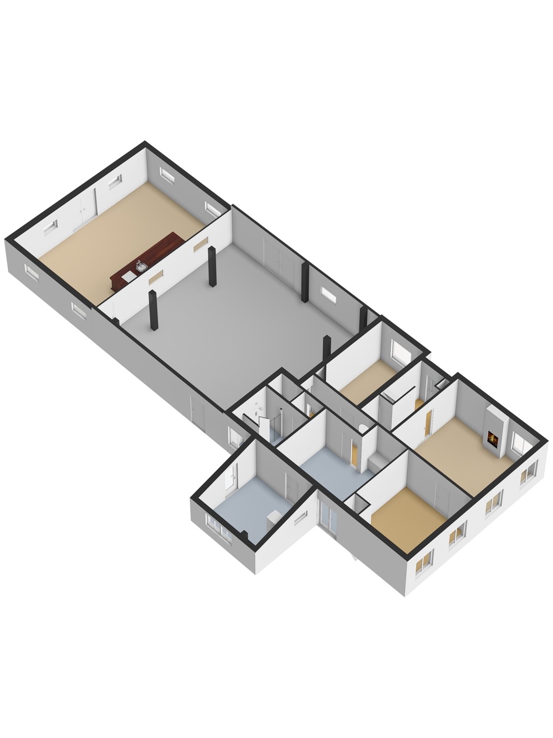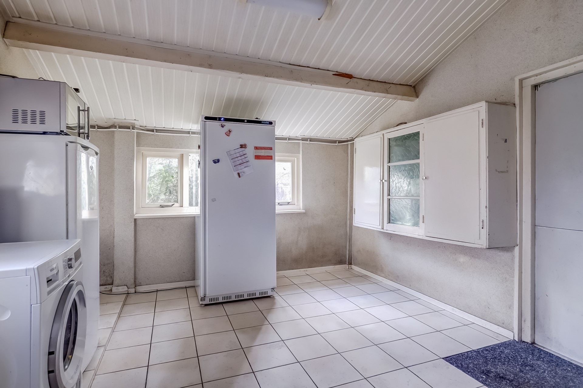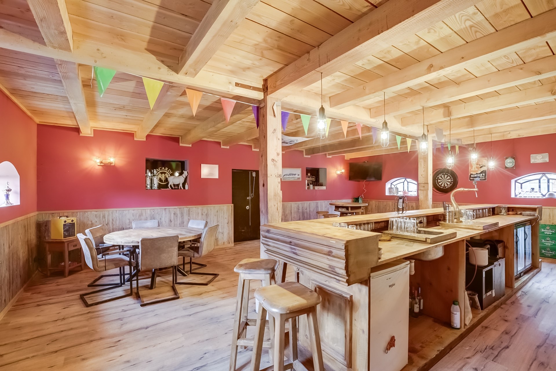Afmeting ca. 16 x 10 meter, gebouwd van halfsteens muur met pannen dak, voorzien van houten zolder. Het achterhuis wordt gebruikt als opslag / ontvangstruimte. Een bijzonder element van dit object is de ruimte in het achterste gedeelte van het achterhuis, waar zich een sfeervolle verblijfsruimte met bar en zitgedeelte bevindt. Deze gezellige plek leent zich perfect voor werk- / familiebijeenkomsten, hobby’s of het ontvangen van gasten en geeft de woning een uniek en charmant karakter.