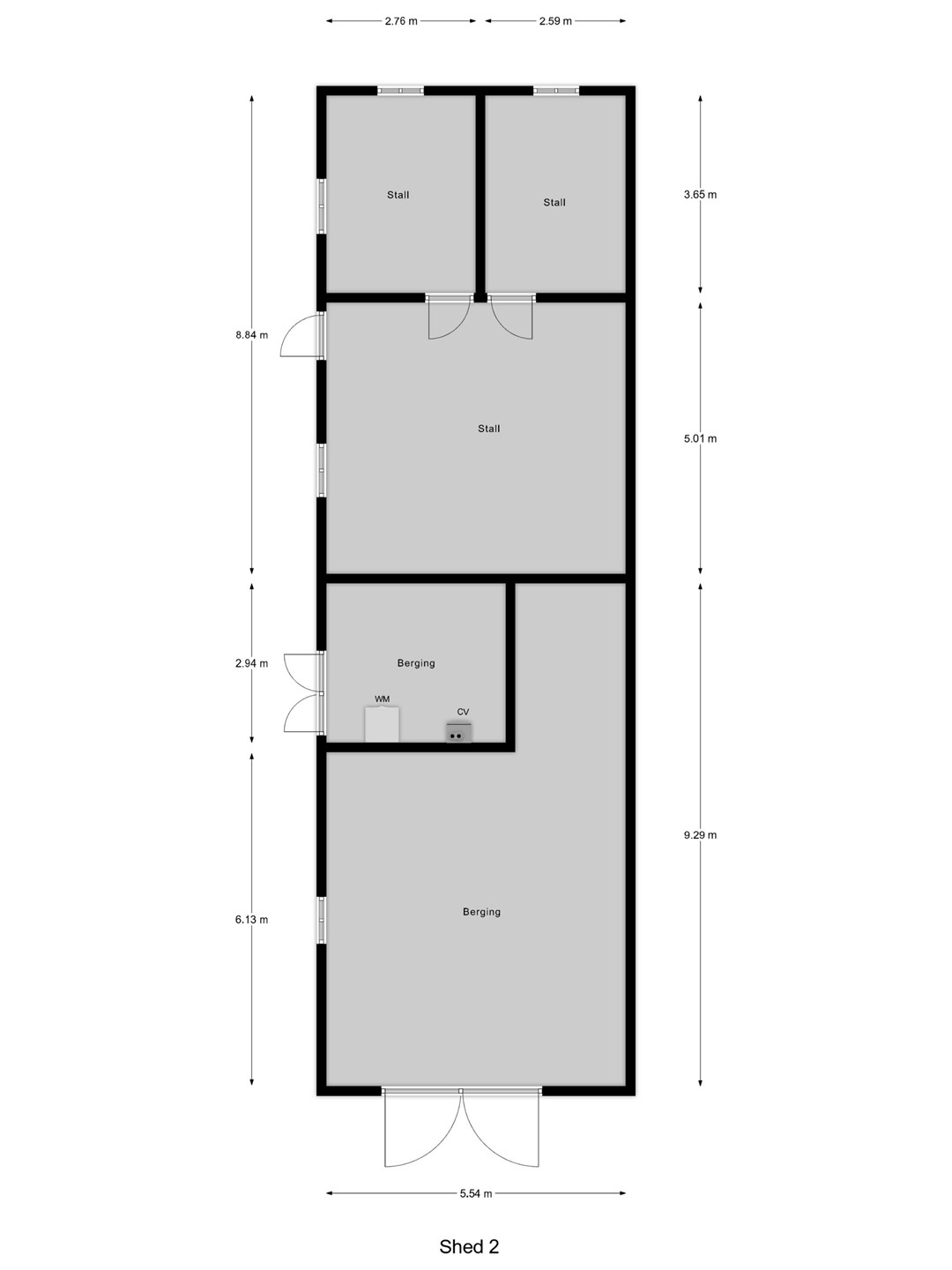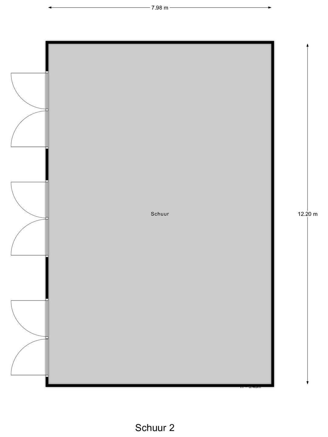 Loods, afmeting ca. 12,5 x 8 meter, gebouwd van damwand, geïsoleerd met dupanel platen, voorzien van vlakke betonvloer. 2/3 deel is voorzien van een verdiepingsvloer, 1/3 deel niet.