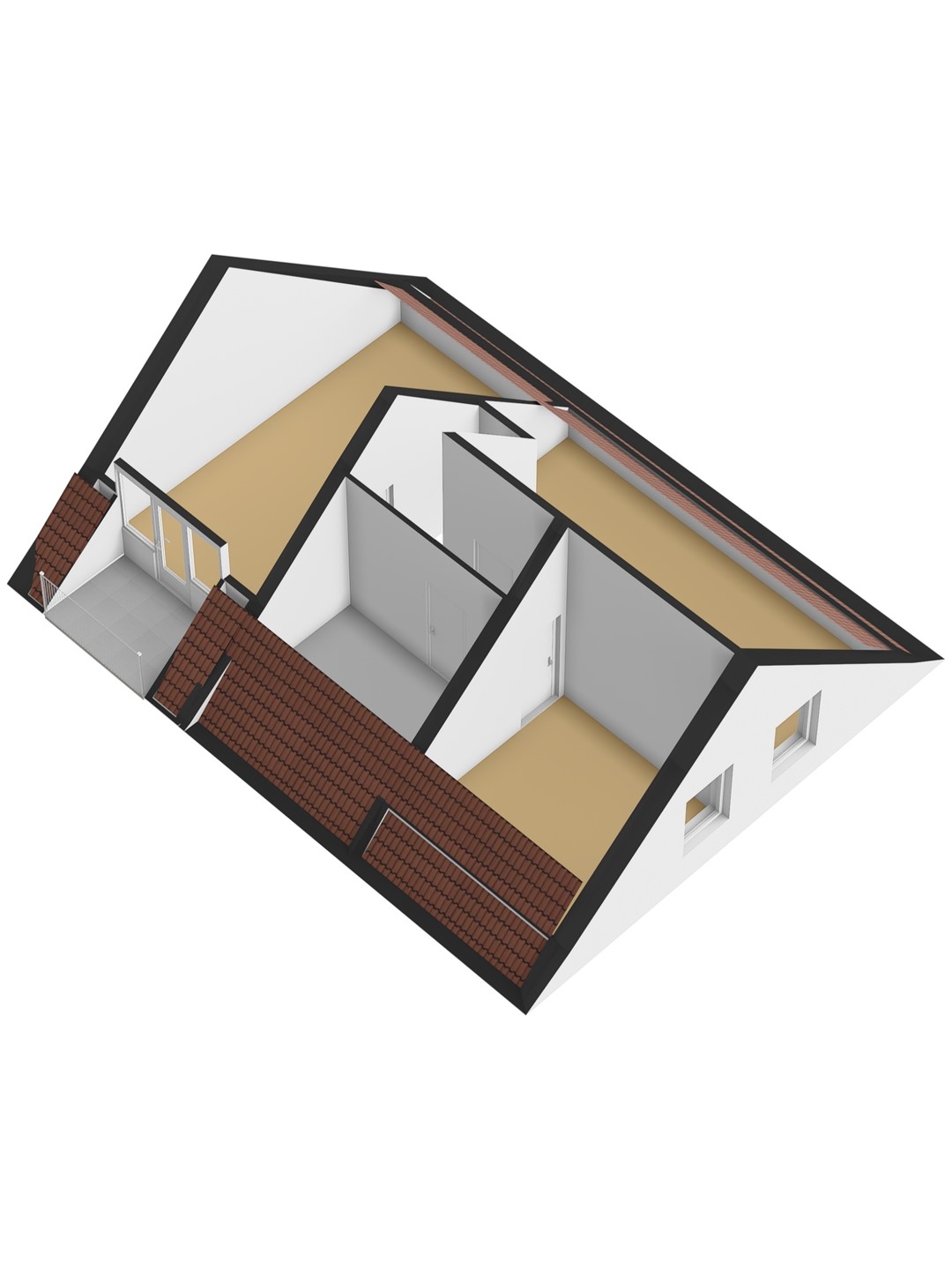 Verdieping: Overloop; hoofdslaapkamer met deur naar het balkon, 2 slaapkamers aan de voorzijde; ruimte voor het maken van een 2e badkamer.