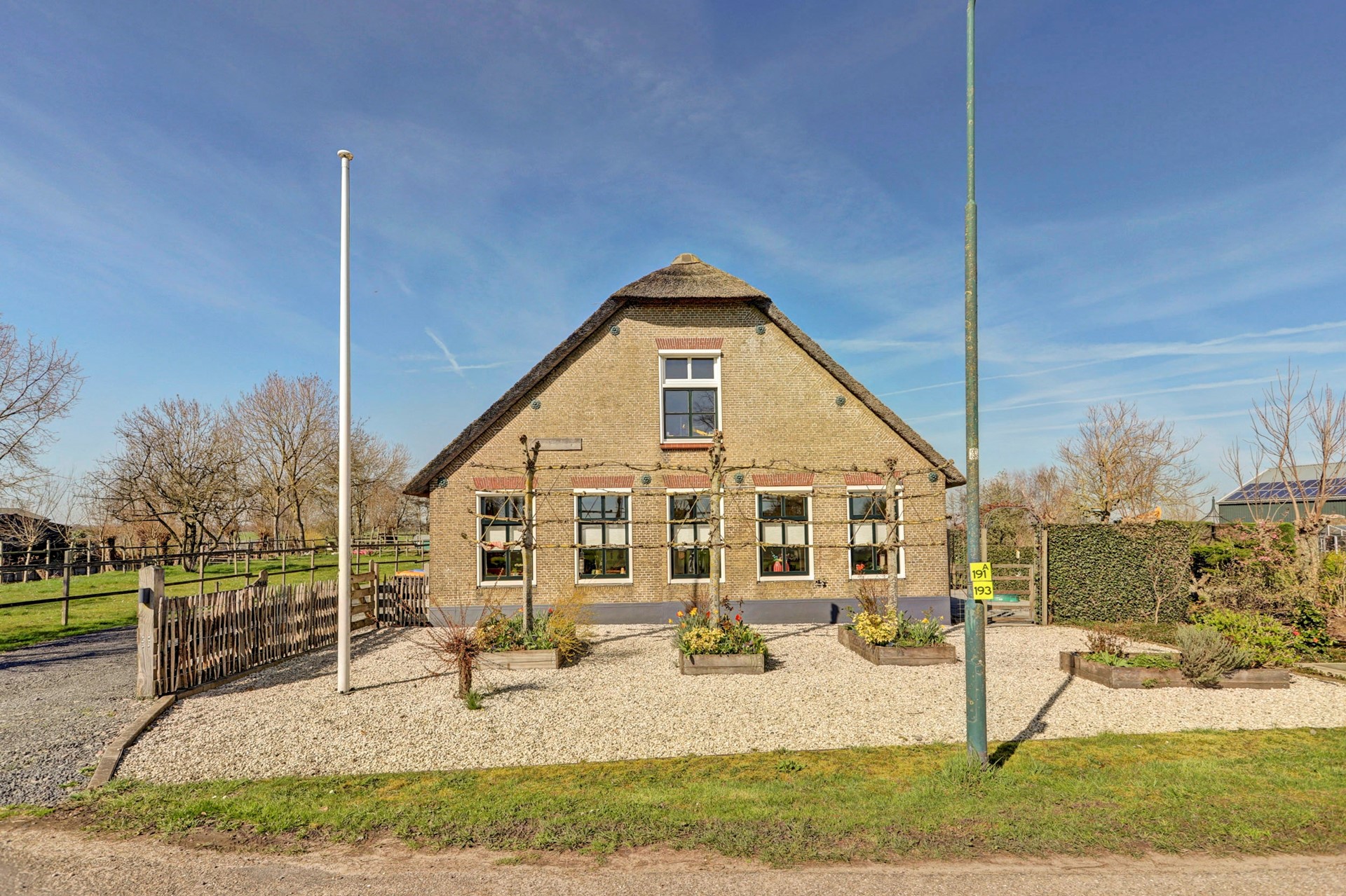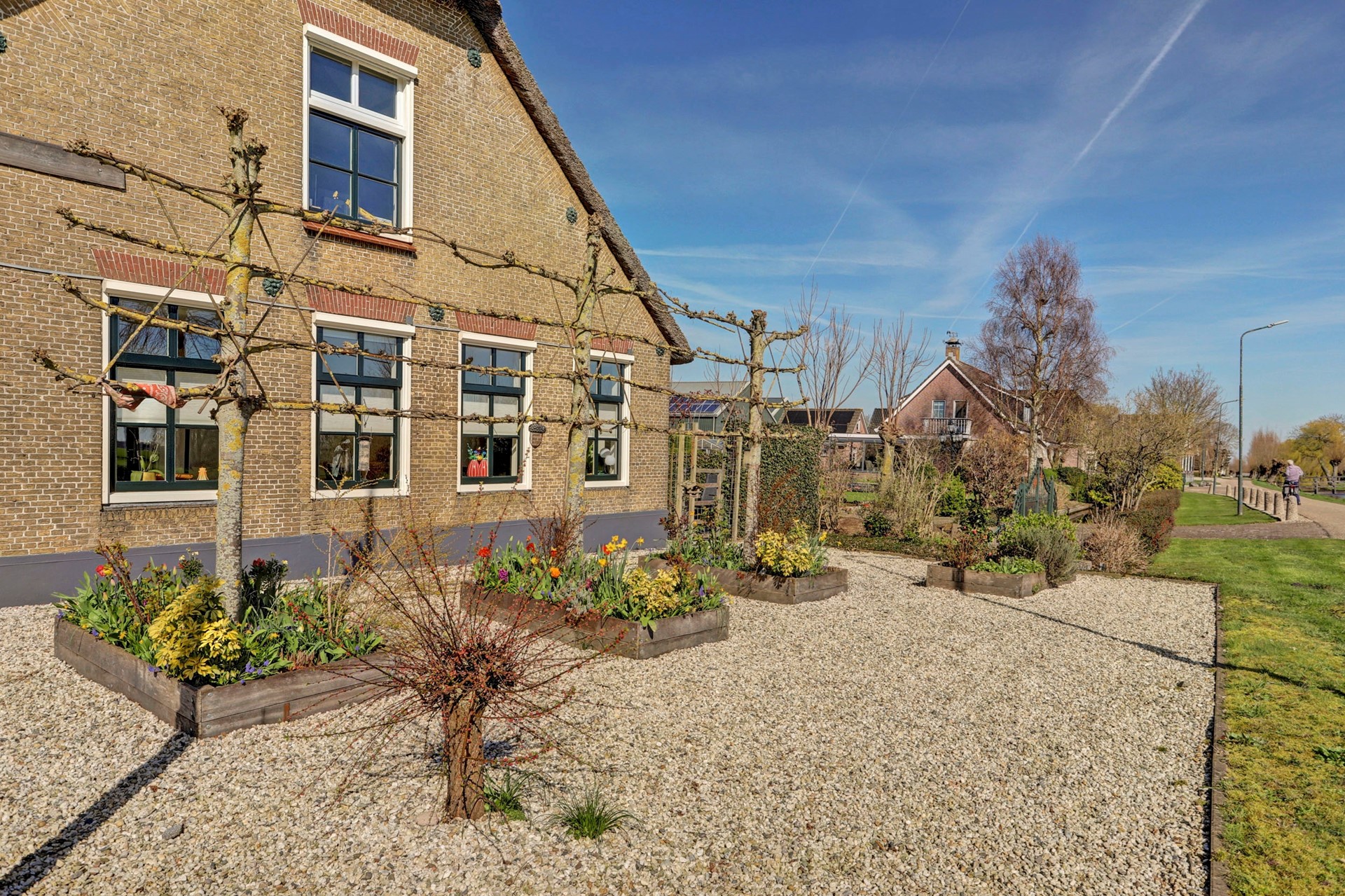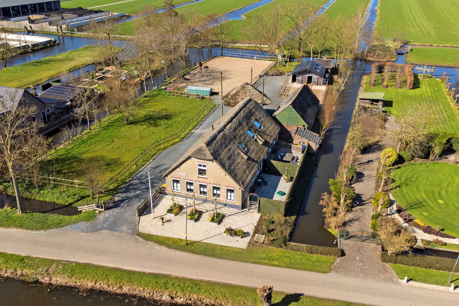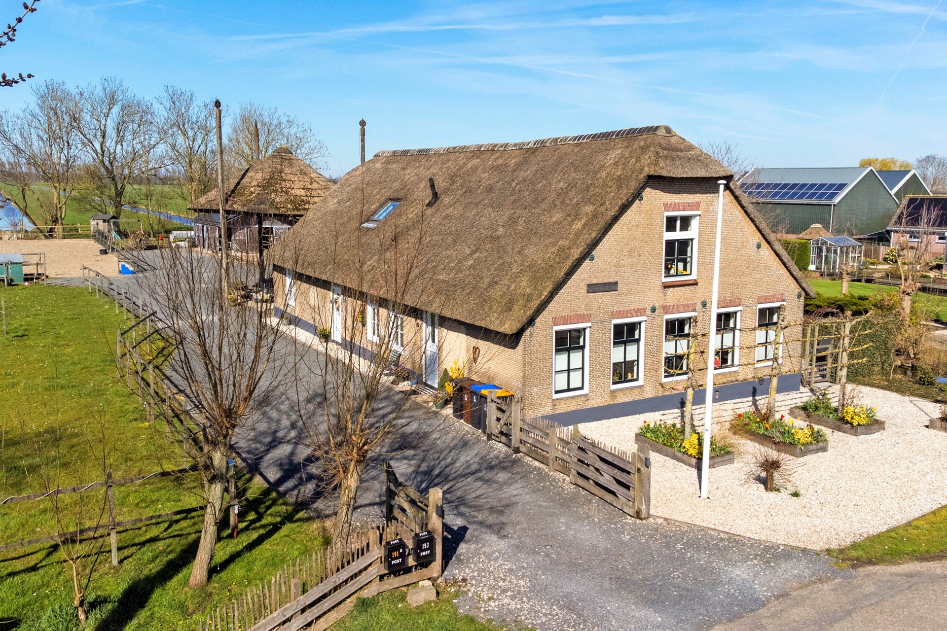 Verbouwde voorzijde van een woonboerderij midden in het Groene Hart!