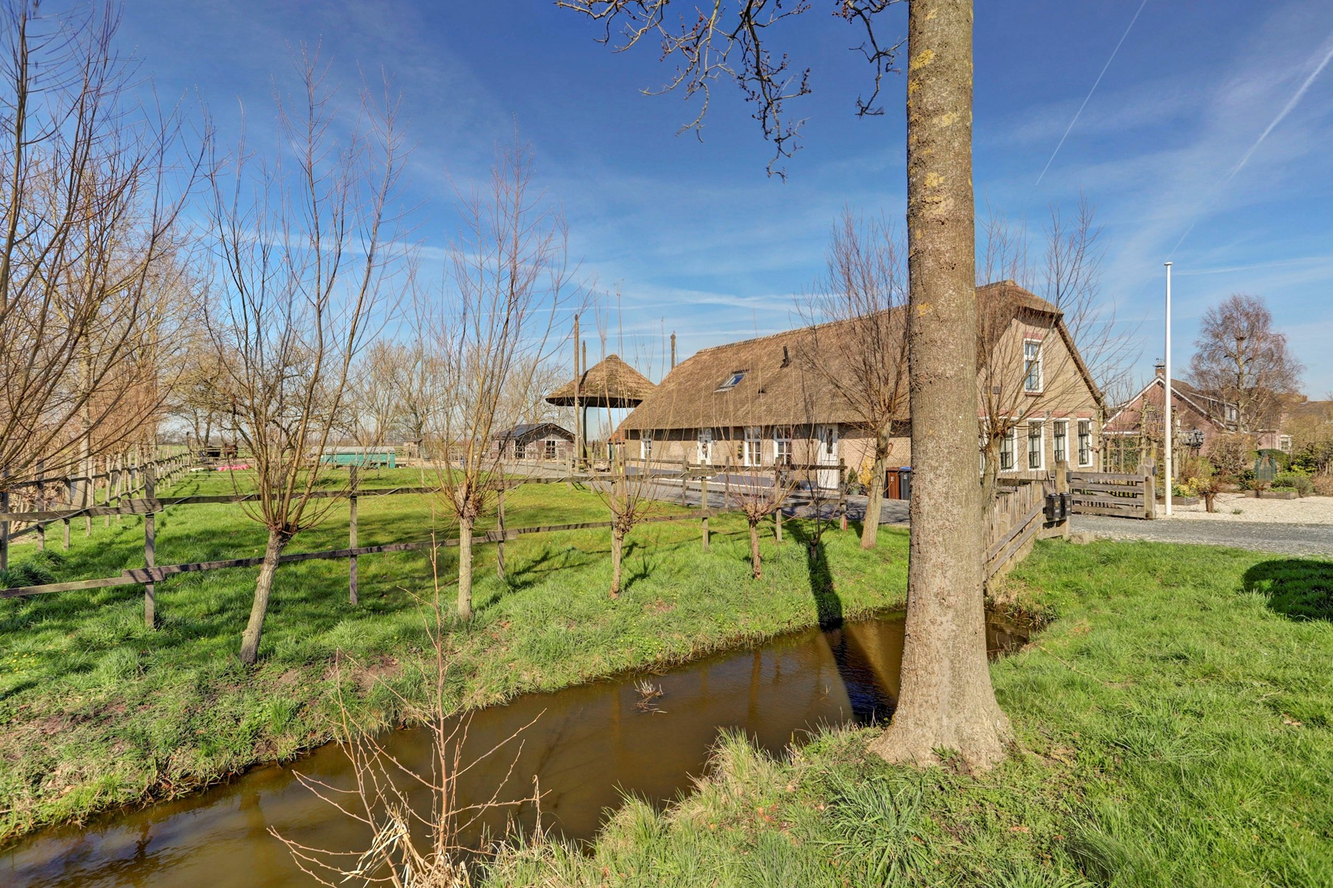 Kenners weten het: de Noordzijdseweg, waaraan deze boerderij is gelegen, is ‘de rustige kant’. Deze weg loopt parallel aan de Zuidzijdseweg, met daartussen een prachtige wetering. Waar de Zuidzijdseweg de doorgaande route vormt, is de Noordzijdseweg rustig, met enkel bestemmingsverkeer en fietsers.