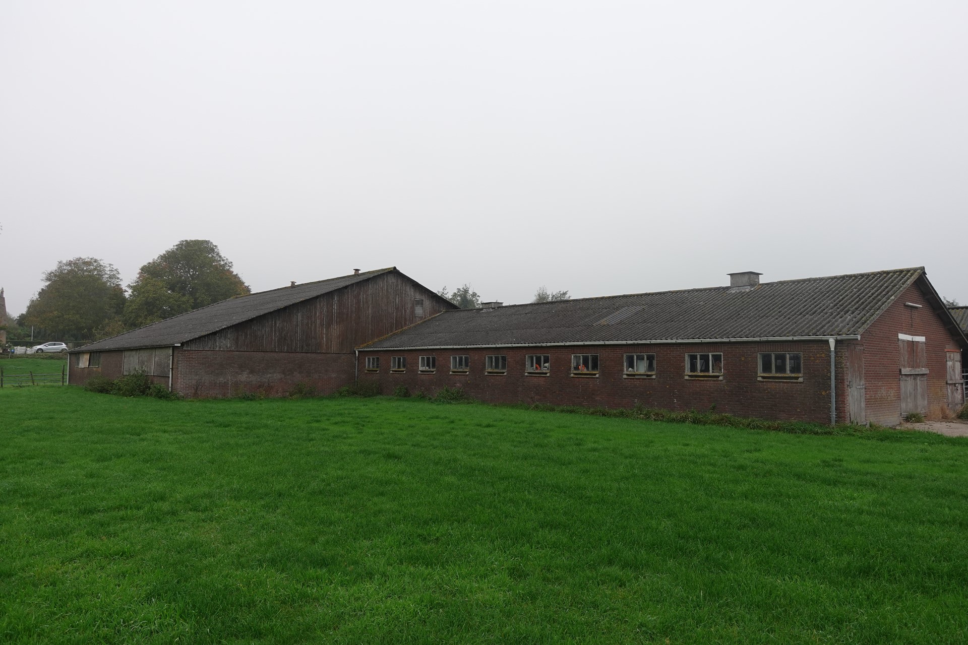 1. Agrarisch erf met 800 m² schuren/loodsen en 2. woonunit.