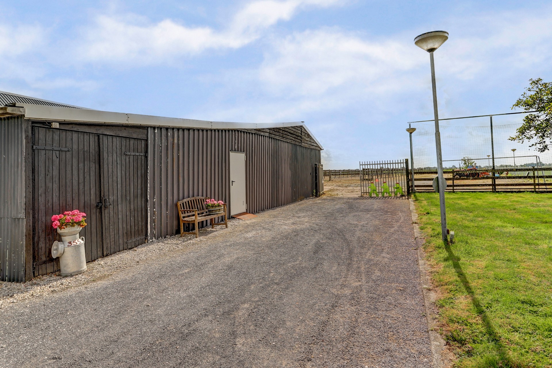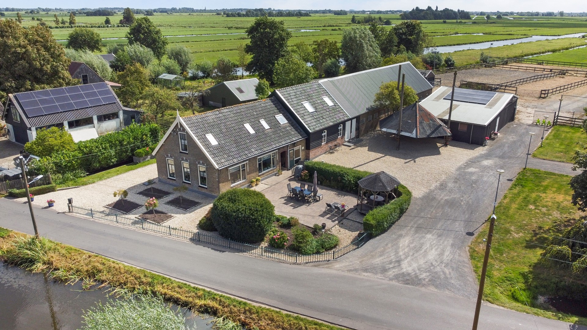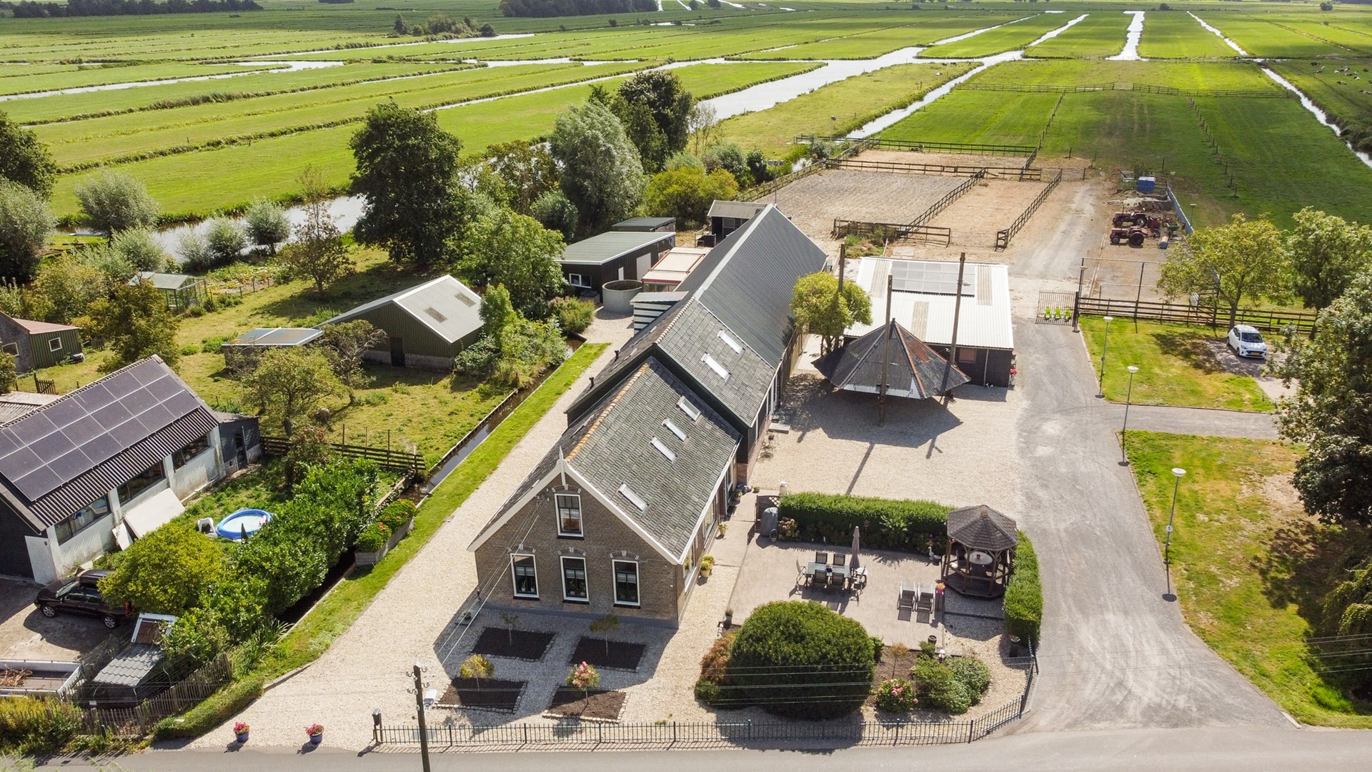 Het geheel is gelegen aan een rustige weg in een landelijke omgeving, met zoals gezegd een prachtig vrij uitzicht over de uitgestrekte weilanden. Een sfeervolle plek waar wonen en buitenleven hand in hand gaan. Op het ruime perceel bevinden zich, naast de woning, onder andere een aangebouwde schuur met stallen, buitenstallen, twee schuren, een hooi-overkapping, tuinhuis, kaberg en diverse paardenfaciliteiten zoals een paddock, rijbak en loungeerbak. Het geheel wordt gecompleteerd door een direct aan het erf gelegen perceel weiland.
