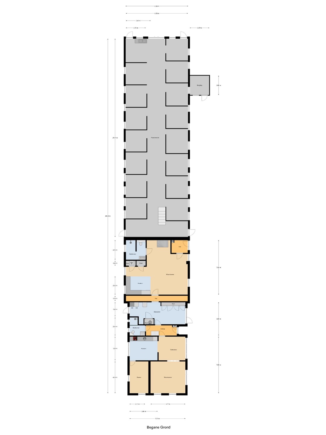 Schuur 2: Schuur van ca. 72 m², gebouwd op betonnen platen met een golfplaten dak en wanden. De schuur is voorzien van elektra en bevat een loopdeur en garagedeur.