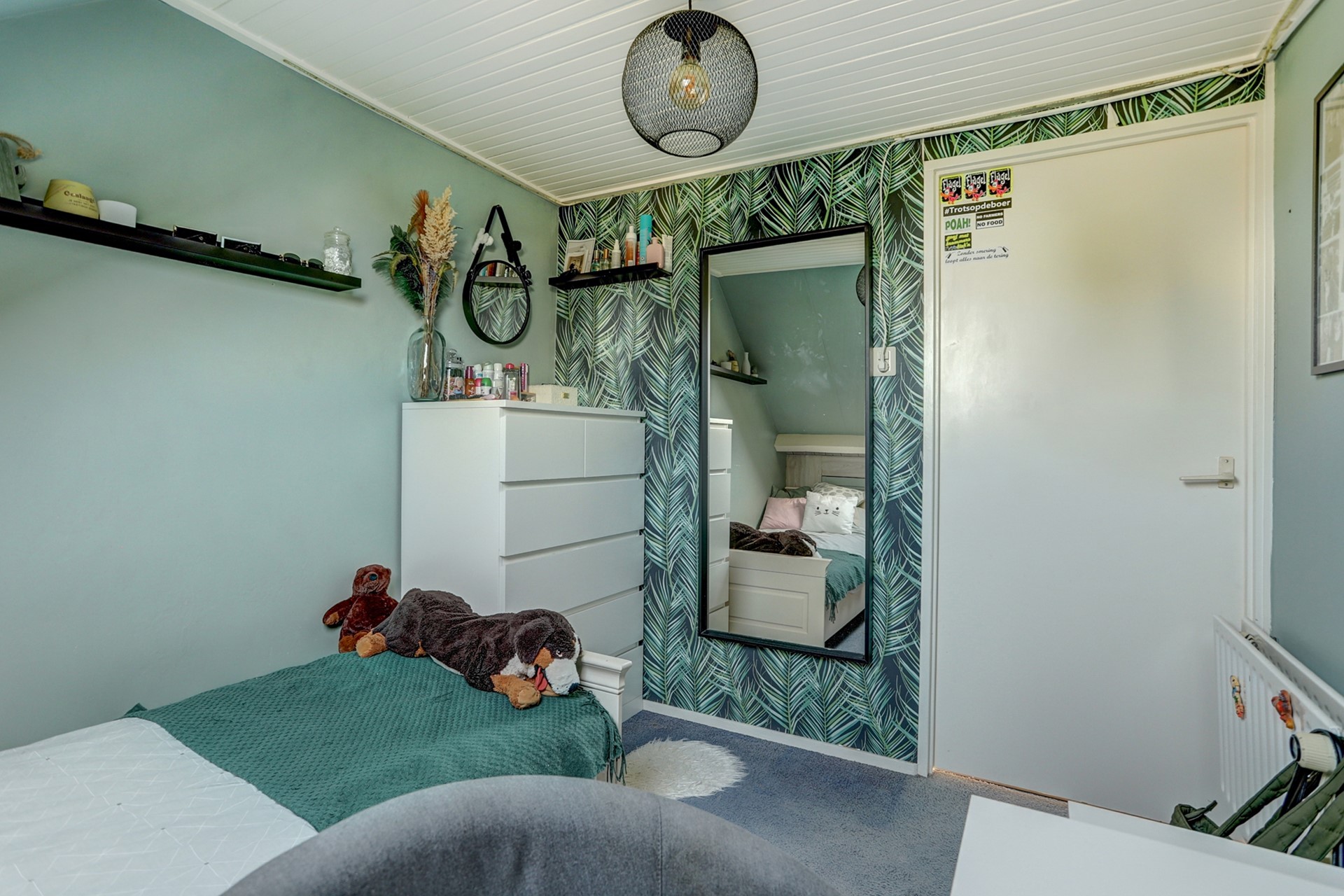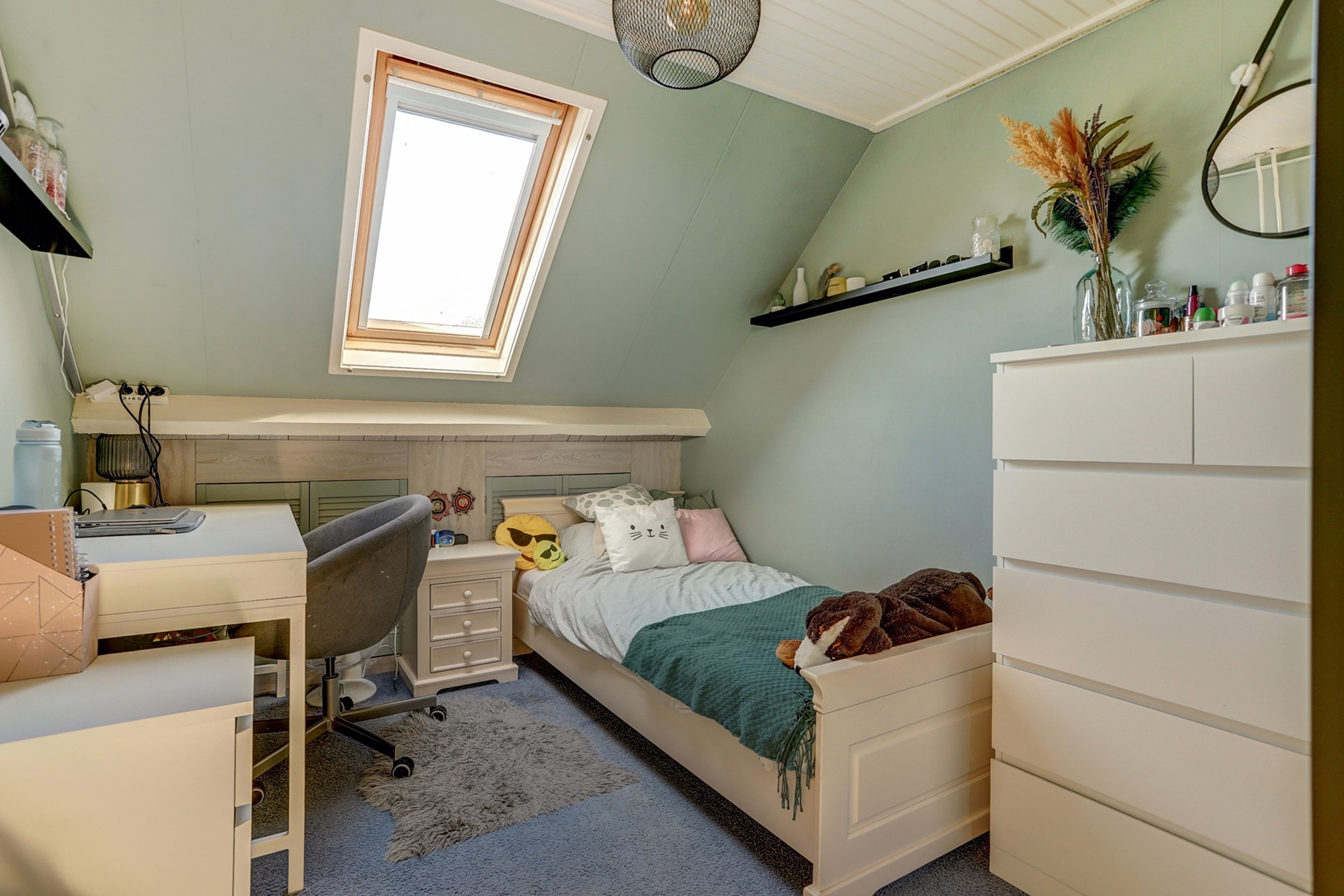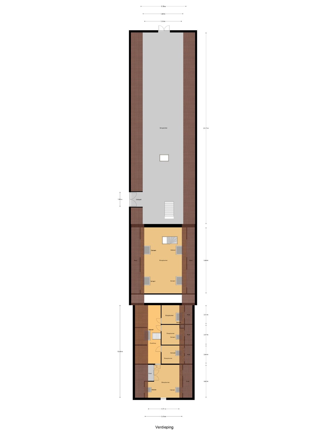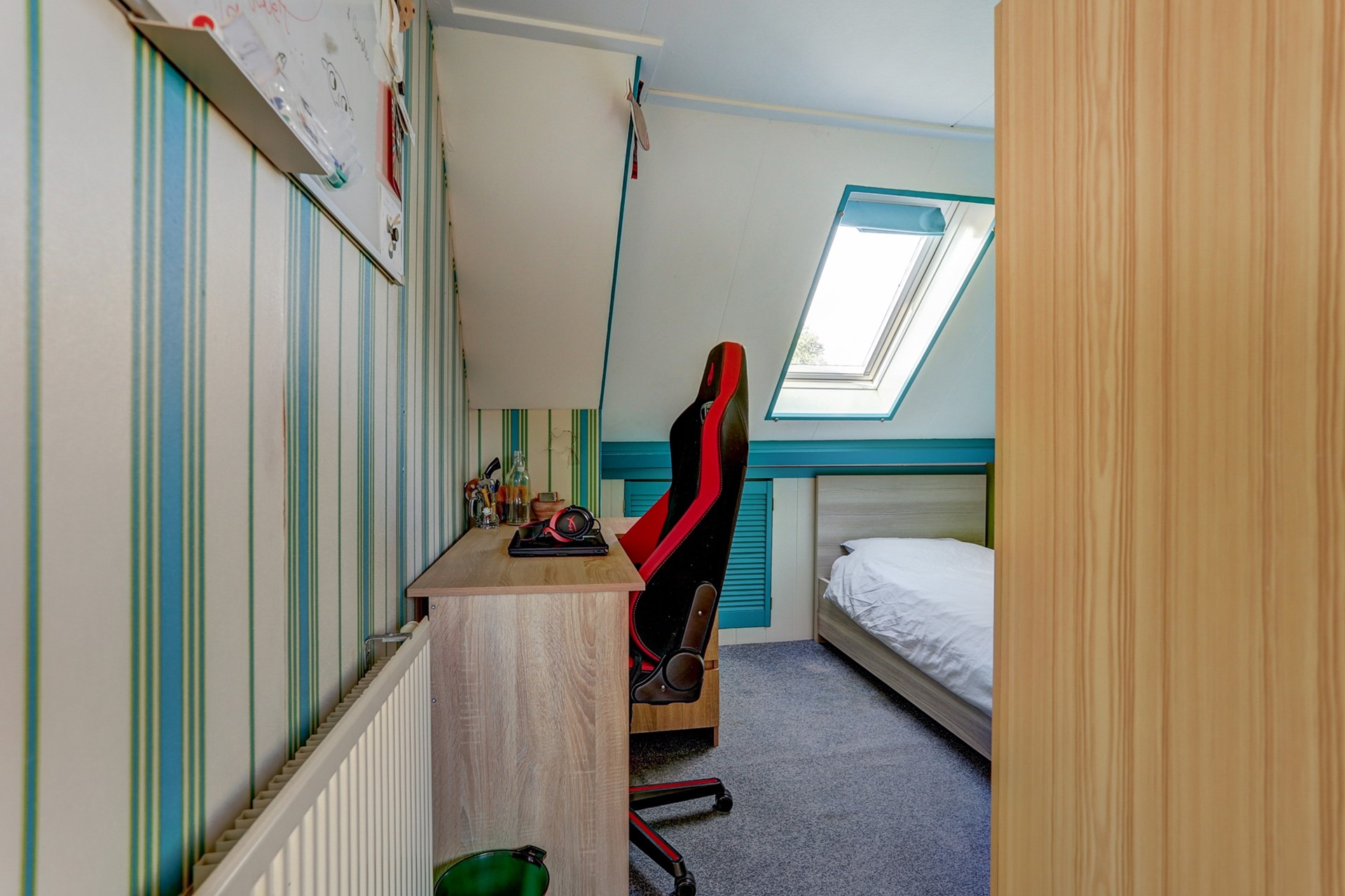 Verdieping: Voorhuis: Op de verdieping bevinden zich een ruime overloop en 4 slaapkamers welke allemaal voorzien zijn van bergruimte onder de schuine kap.