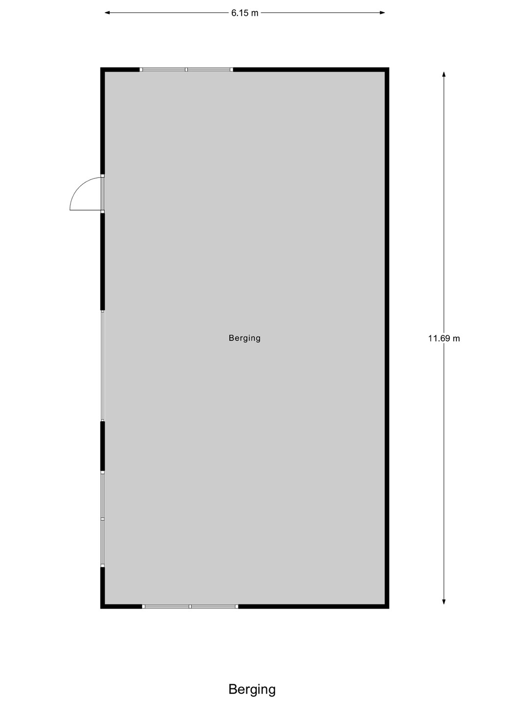 Schuur 1: Royale schuur van ca. 172 m², gebouwd van hout op een deels stenen en deels betonnen vloer en voorzien van een golfplaten dak met 31 zonnepanelen. De schuur is voorzien van elektra en bereikbaar via een schuifdeur en loopdeur.