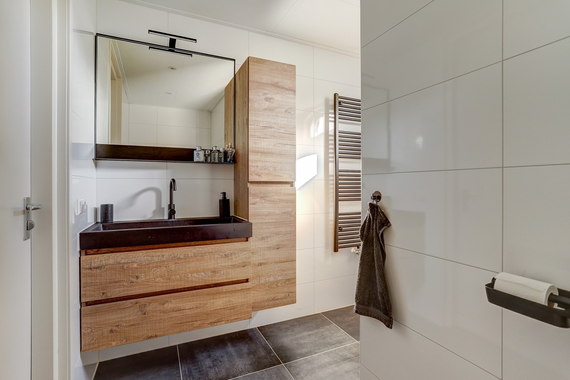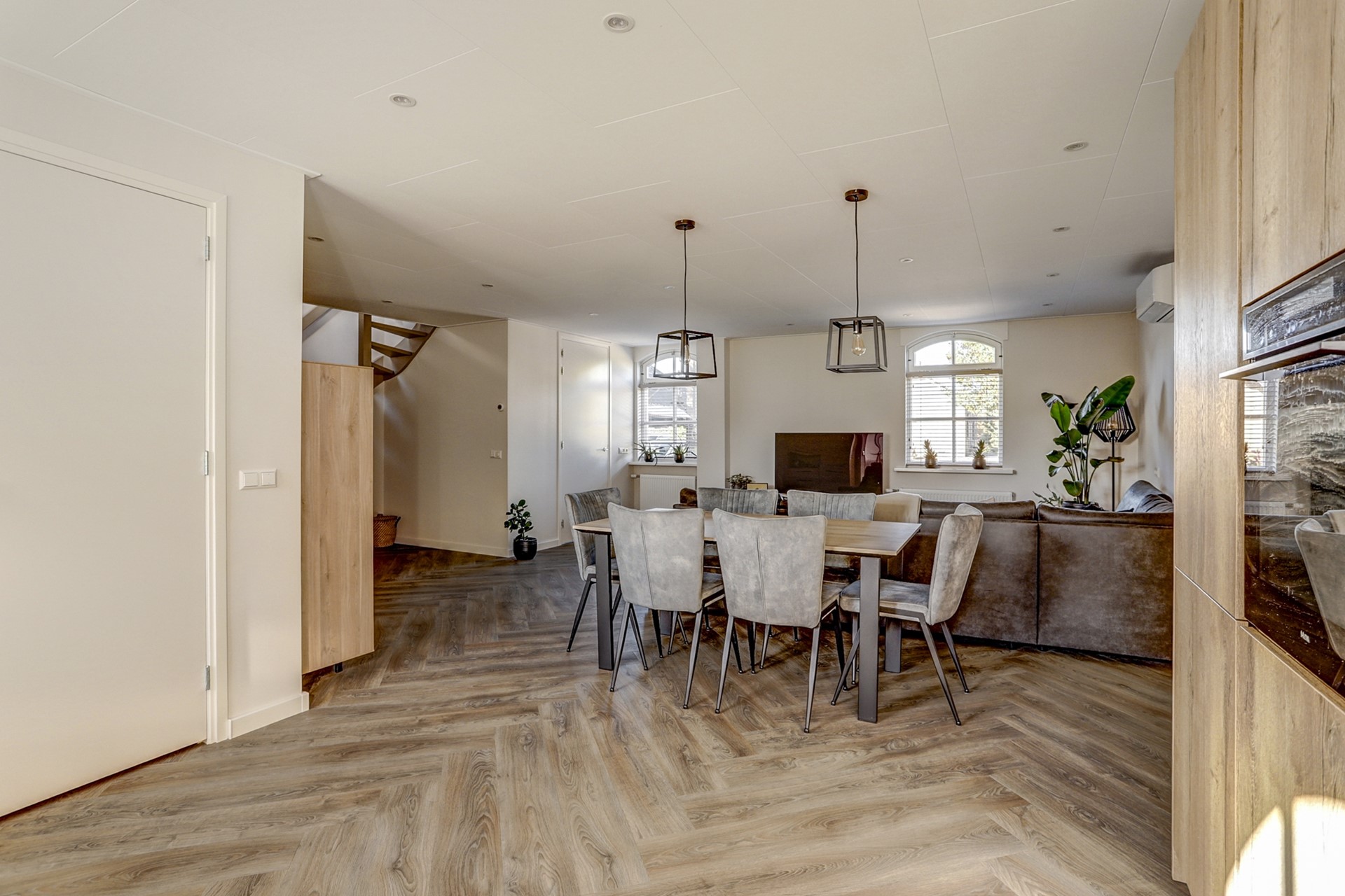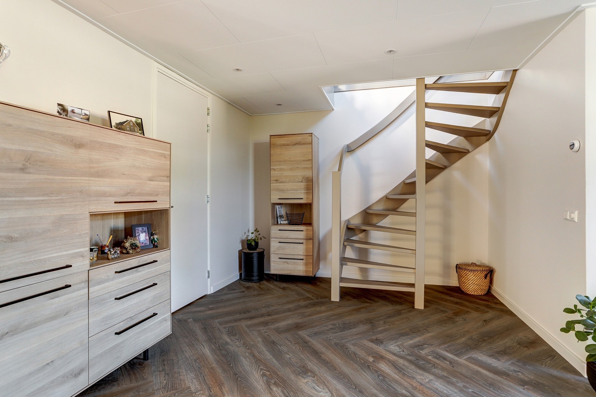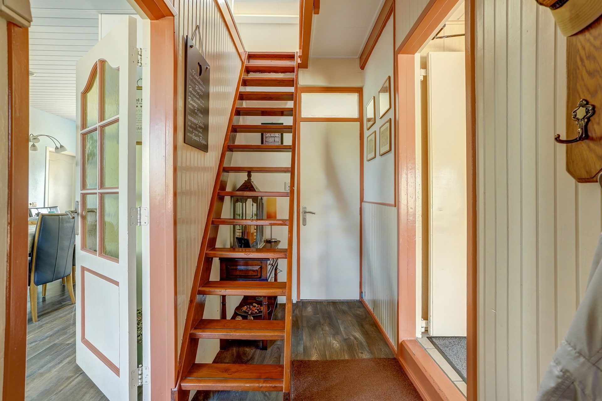 Begane grond: Voorhuis: Bij binnenkomst wordt u verwelkomd in de hal, waar zich de meterkast en de trap naar de eerste verdieping bevinden. Vanuit de hal loopt u door naar de woonkeuken, welke is voorzien van een combi-oven, koelkast en een 4-pits kookplaat. Verder bevinden zich aan de voorzijde van het huis een slaapkamer en de woonkamer. De vele raampartijen maken de woonkamer erg licht en bieden een prachtig vrij uitzicht over de polder. Vanuit de hal kunt u ook de volledig betegelde badkamer bereiken welke een wastafelmeubel, handdoekenradiator toilet en douche biedt. Via de hal bereikt u tevens de bijkeuken met CV-opstelling, witgoedaansluiting en vaste kasten.