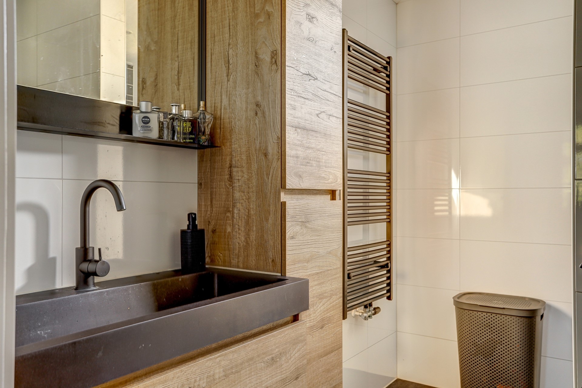 Achterhuis: Het achterhuis (volledig gerenoveerd in 2022) is bereikbaar via de bijkeuken en via een aparte ingang. Bij binnenkomst bevindt u zich gelijk in de ruime woonkamer met open keuken in hoekopstelling. De nette keuken is voorzien van een koel-vries combinatie, combi-oven en 4 pits inductieplaat. Via de woonkamer is tevens de volledig betegelde badkamer te bereiken welke een wastafelmeubel, handdoeken radiator, inloopdouche en toilet biedt.