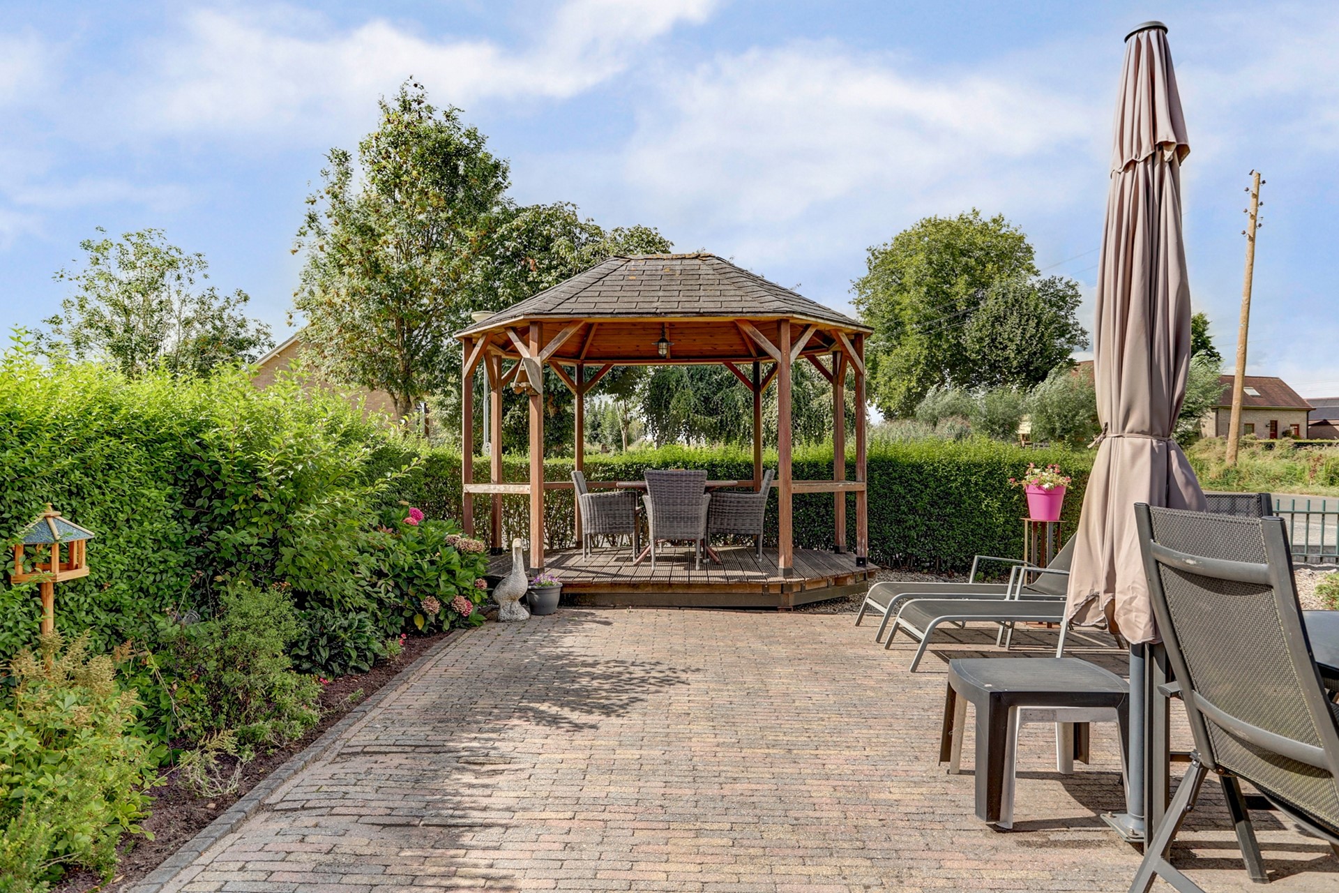 Op het royale perceel bevinden zich onder meer een aangebouwde schuur met stallen, buitenstallen, twee schuren, een hooi-overkapping, tuinhuis en kaberg. Daarnaast zijn er diverse paardenfaciliteiten aanwezig, waaronder een paddock, rijbak en loungeerbak. Het geheel wordt gecompleteerd door een fraai perceel weiland.