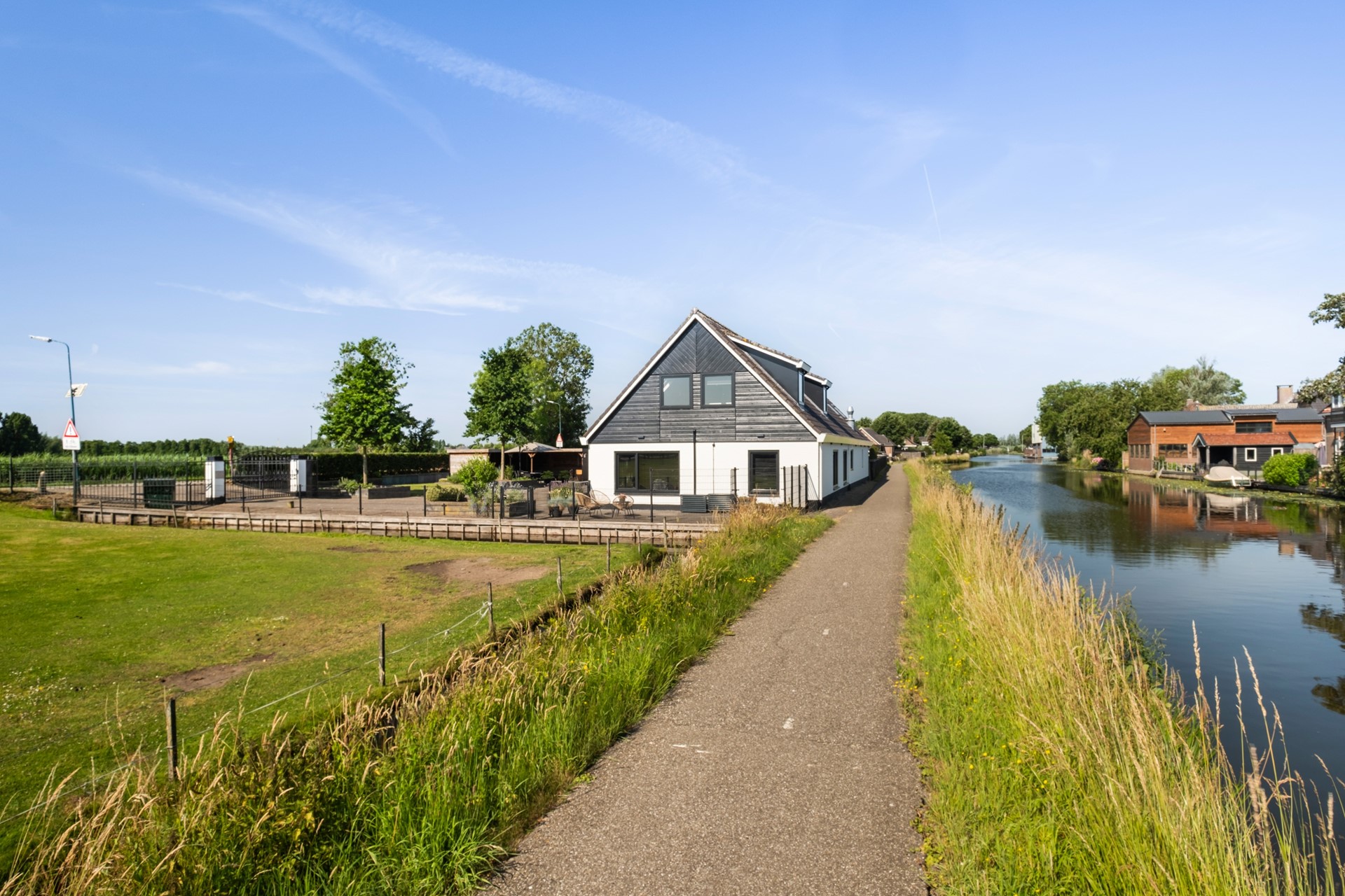 De duurzame, gasloze woning met energielabel A+++ is gelegen op een prachtige plek tussen de landelijke weg, het jaagpad en de Oude Rijn – een omgeving waar rust, ruimte en bereikbaarheid perfect samenkomen.