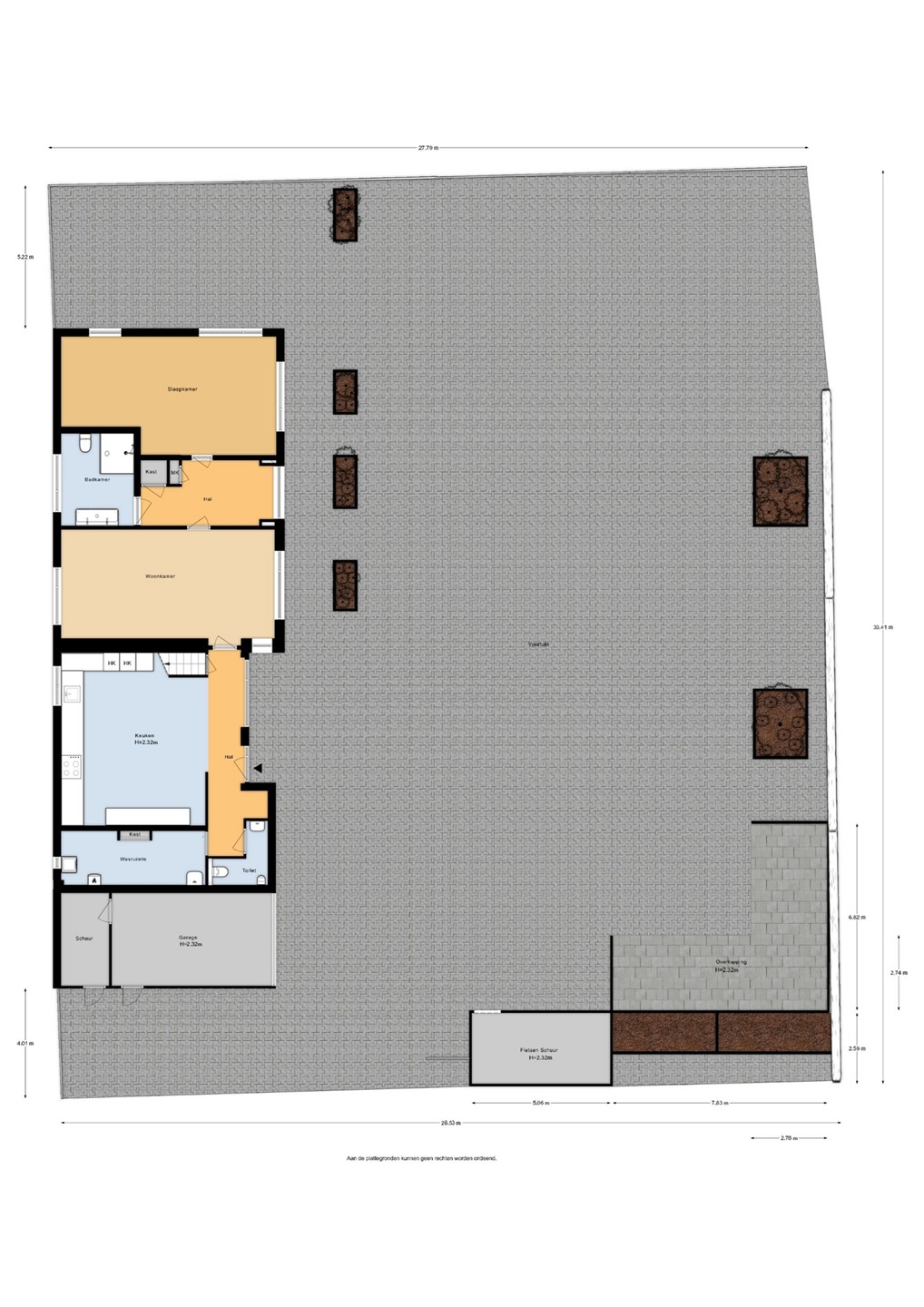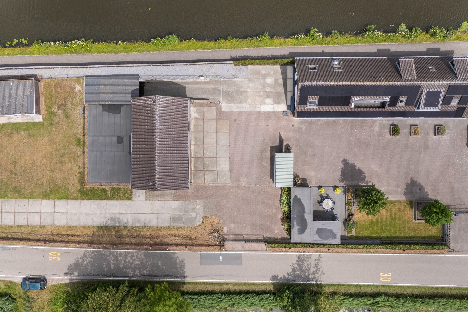 - Elektronisch afsluitbaar hek op de inrit;